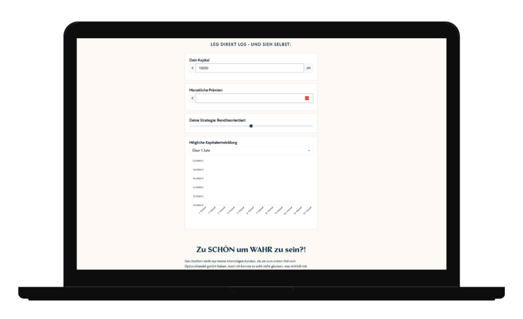 Finde heraus, ob der Optionshandel deine Option für ein zusätzliches Einkommen ist, dir finanzielle Stabilität & Sicherheit schenkt und gleichzeitig dein Tool für finanzielles Wachstum & Unabhängigkeit ist.